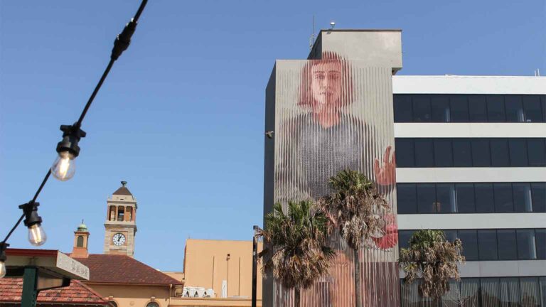 ニューカッスル市内のメインストリートであるハンターストリートから1本道を入ると見えるハンターストリートモール。小さな町の商店街を思い出させる様なとても落ち着いた雰囲気のモールの壁沿いにはアーティスト達が思い思いに描いた個性豊かな作品を見学する事が出来ます。